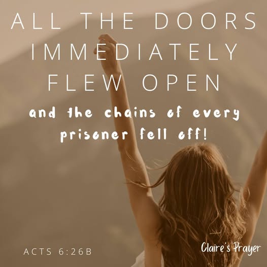 Life often seems to be a series of waiting. Waiting for prayers to be answered. Waiting for a doctorโs report. Waiting for a loan, a problem to be solved, a reply, a resolution. Paul and Silas have been on my mind, the earthquake that flung all the doors open in spectacular fashion setting them free! โ๐จ๐๐๐๐๐ ๐๐๐ ๐๐๐๐๐ ๐ท๐๐๐ ๐๐๐ ๐บ๐๐๐๐ ๐๐๐๐ ๐๐๐๐๐๐๐ ๐๐๐ ๐๐๐๐๐๐๐ ๐๐๐๐๐ ๐๐ ๐ฎ๐๐ , ๐๐๐ ๐๐๐ ๐๐๐๐๐ ๐๐๐๐๐๐๐๐๐ ๐๐๐๐ ๐๐๐๐๐๐๐๐๐. ๐บ๐๐ ๐ ๐๐๐๐, ๐๐๐๐๐ ๐๐๐ ๐ ๐๐๐๐๐๐๐ ๐๐๐๐๐๐๐๐๐๐, ๐๐๐ ๐๐๐ ๐๐๐๐๐๐ ๐๐๐ ๐๐๐๐๐๐ ๐๐ ๐๐๐ ๐๐๐๐๐ ๐๐๐๐๐๐. ๐จ๐๐ ๐๐๐ ๐ ๐๐๐๐ ๐๐๐๐๐ ๐๐๐๐๐๐ ๐๐๐๐ ๐๐๐๐, ๐๐๐ ๐๐๐ ๐๐๐๐๐๐ ๐๐ ๐๐๐๐๐ ๐๐๐๐๐๐๐๐ ๐๐๐๐ ๐๐๐.โ (Acts 16:26) What a victory! What a celebration! But the truth is Paul and Silas played that same waiting game.