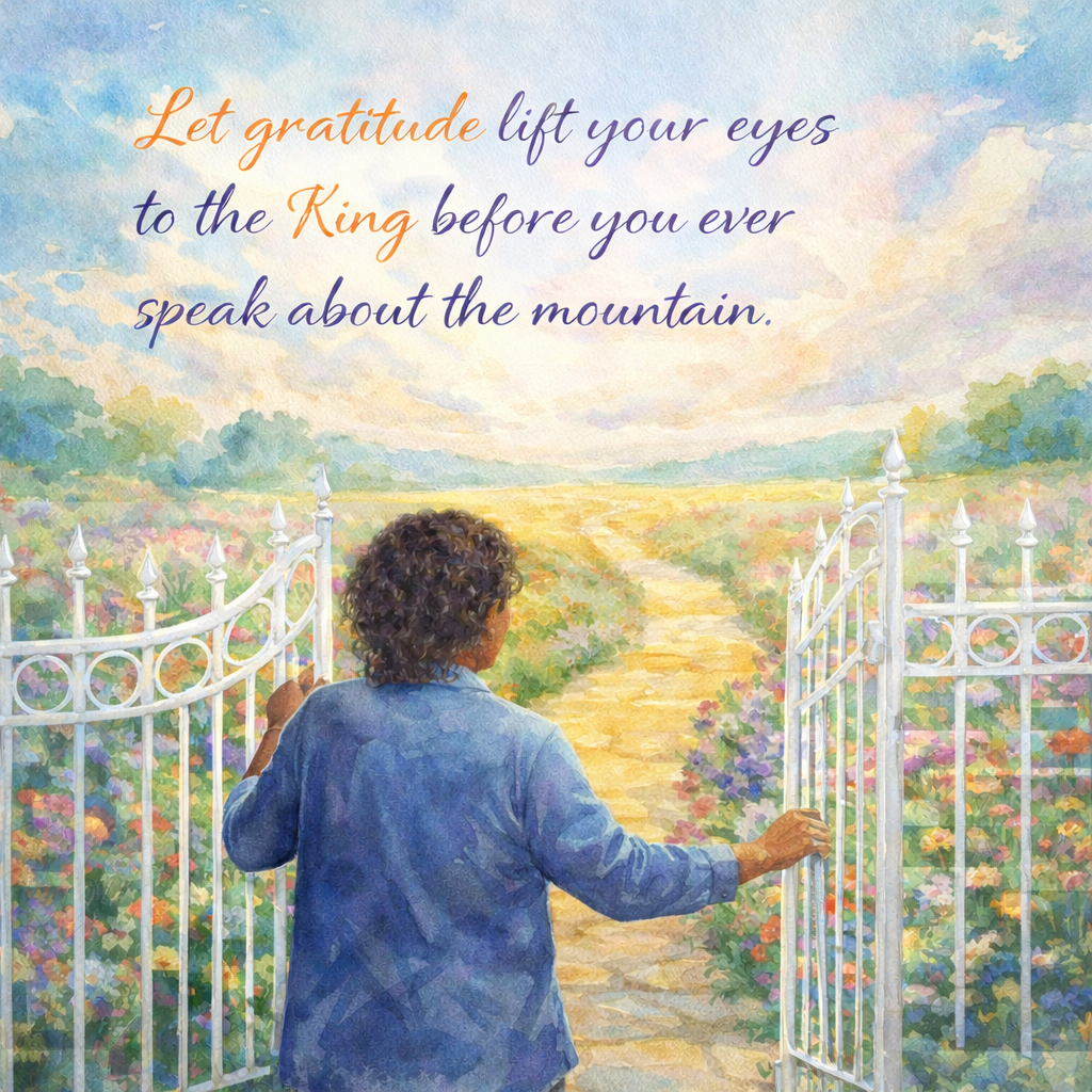 Today, letโs begin every prayer with a โGate and Courtโ pattern: Thankfulness followed by Praise. Let thankfulness and praise lift your head to see the King, before you ever speak about the mountain.