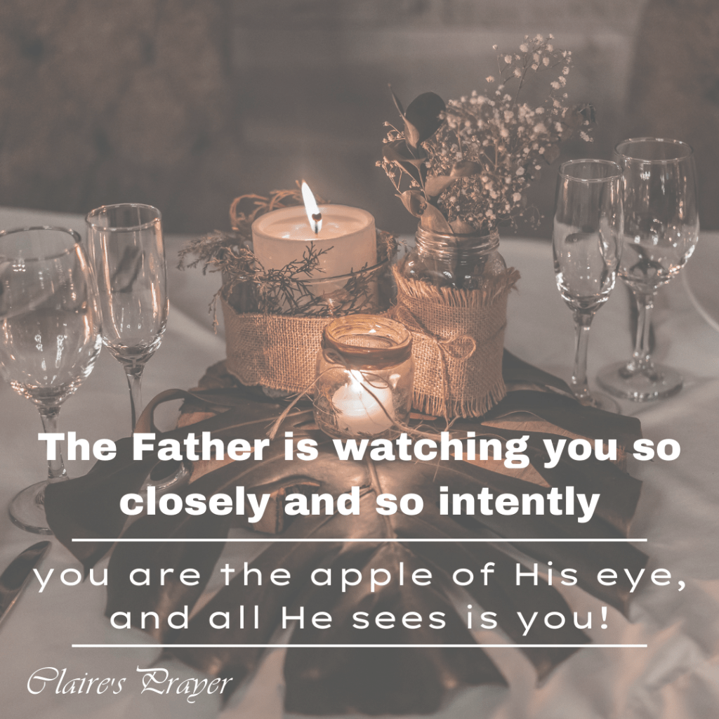 At times, I can look deep into my husbandโs eyes, and I know just what he is thinking. There is a profound connection that has developed over the years. We know each other so well – not only can we finish each otherโs sentences, but we can communicate without words. Isnโt that the LORDโs desire for us, that we draw so close to Him, that we seek such intimacy with Him, that we see our reflection in His eyes? That we get to know Him so well that no words are needed – we will know what He is thinking and with just a slight movement of His beautiful eyes, we will be instructed to go to the left or to the right.